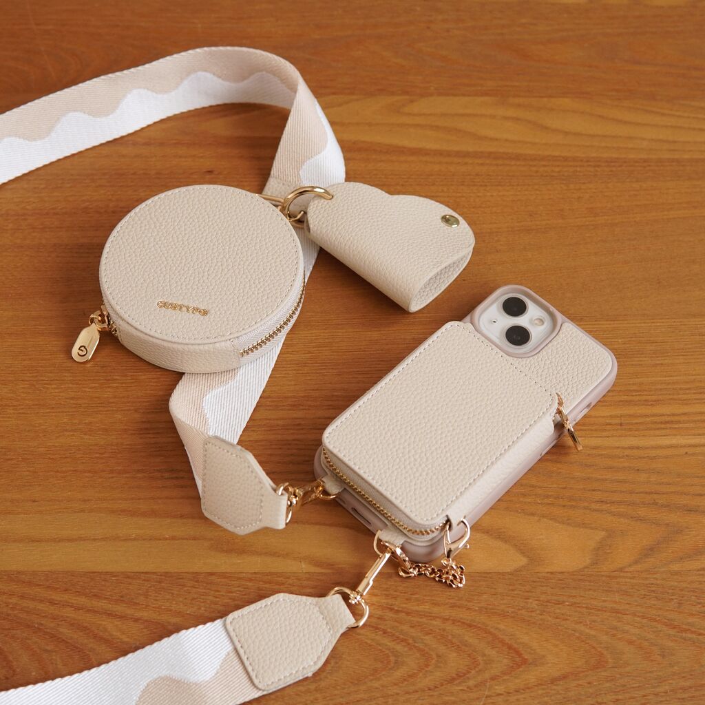 - スマートフォン・携帯電話 > iPhoneアクセサリー > ショルダーストラップ付き スマホケース ポーチタイプ ベージュ系 ショルダーストラップ付き』スマホケースが実用的でスタイリッシュ