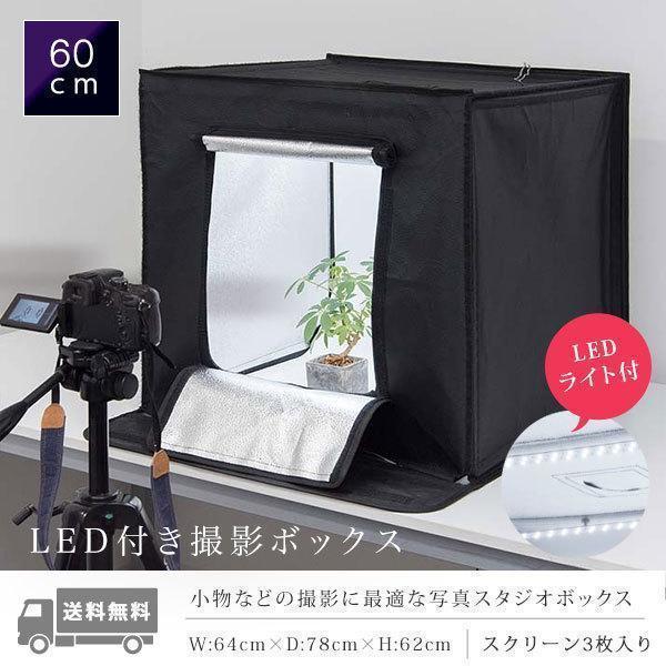 - 生活家電 > その他 > 撮影用ライトボックス LED搭載60×60×60cm 調光可能モデル背景布付き 1年保証 撮影ボックス 撮影キット 撮影ブース 60x60cm LEDライト付き