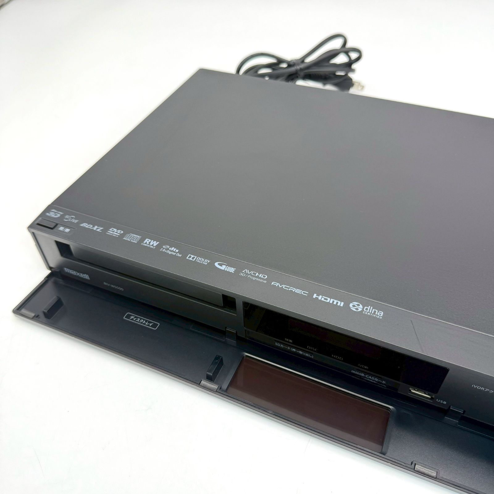| 商品の特徴 | maxell BD レコーダーBIV-WS500/1TB換装/学習リモコン 楽天市場】biv。maxell BD レコーダーBIV-WS500/1TB換装/純正リモコン。maxell BD レコーダーBIV-WS500/1TB換装/純正リモコン。・iVDRスロット内蔵のBDレコーダーです。・当サイトで購入し、問題なく使用できました。・使用目的が済みましたので、出品いたします。・外観は前面パネルや天板にキズがあります。 2枚目、3枚目の写真をご参照ください。●HDDは内蔵500GBを1TBに換装してあり、2倍の録画が可能で、WS1000と同等の容量になっています●BDドライブ内蔵、iVDRスロットは1個、ダブルチューナーの製品です●地デジ、BSの受信とHDDへの予約録画、HDDからBDデイスク及びiVDRカセットへのダビング、iVDRカセットからBDデイスクへのダビングなどの基本動作を確認しました●製造年は2014年製でファームウェアは最新の1.00.19です●ミニB-CASカードは本体内にセットされています●純正リモコンはありませんが、SONYの学習リモコンRM-PLZ530Dの機器選択ボタンの3つにリモコンコード1~3の基本動作を記憶させてあり、こちらで操作が(純正リモコンよりも)ストレスなく出来ます●このリモコンには説明書がありますのでお使いのTVの操作や任意のキー設定が自由に追加出来ます●取扱説明書はpdfファイルを焼いたCD-Rが付属します●iVDRカセットやHDMIケーブルは付属しません●古い機種で保証もできませんので、あくまで現状渡しとなります。maxell BD レコーダーBIV-WS500/1TB換装/学習リモコン②。。(動作確認済)FUNAI DXR160V ビデオ一体型DVDレコーダー ダビング。【オススメ品/リモコン付】Panasonic パナソニック DMR-EH73V。Panasonic DMR-XP12 DVDレコーダー リモコン・電源ケーブル付 | ||