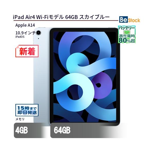 - タブレット > iPad本体 > 超美品♪iPad Air4 64GB WiーFiモデル 中古動作OK♪ iPad 中古 タブレット Air4 Wi-Fiモデル 64GB 本体 10.9インチ iPadOS