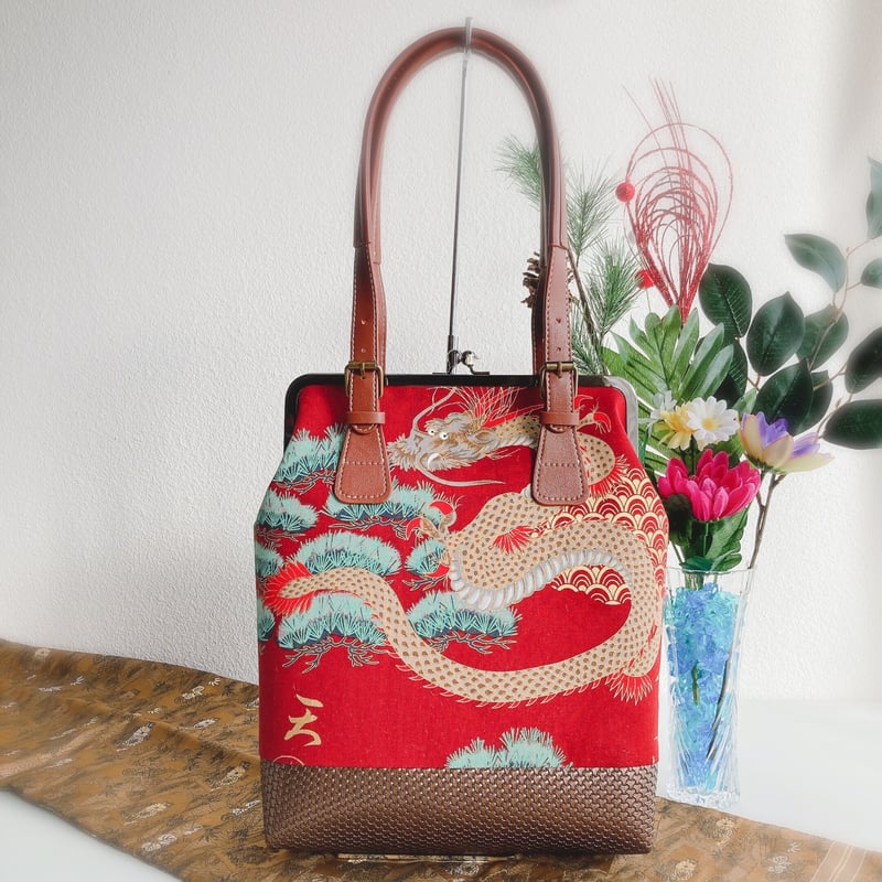 | メーカー | 一閑張りバッグ 鶴、花 華やか 赤 ピンク 緑 縮緬 ハンドメイド |