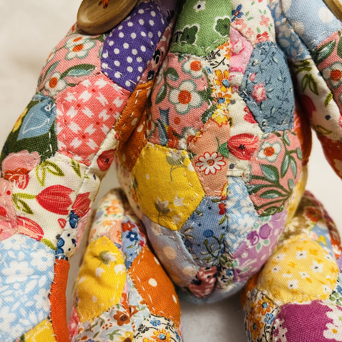| 商品の特徴 | KARIKORICK BEAR ヘキサゴンパッチワークキルトのテディベア。日々のパッチワークの合間に少しづつヘキサゴンを作り貯めてます。hq720.jpg?sqp=-。パッチワークキルトヘキサゴンのキルト約縦69cm×横81cm直径8cmのヘキサゴンを30’sを中心に色々な生地を入れて作製しました。テーブルマットやブランケットなど色々なところで使える便利なキルトになりました。日々のパッチワークの合間に少しづつヘキサゴンを作り貯めてます。所々に可愛いアニマルを入れて、ひとつひとつのピースにキルティングをいれたので、しっかりした仕上がりです。。✨マイガーデン✨パッチワークタペストリー。 | ||