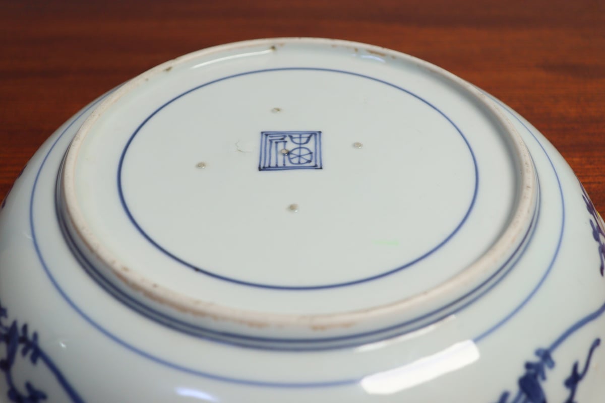 - 美術品・アンティーク・コレクション > 工芸品 > 江戸後期 藍柿右衛門 「染付花草文様八寸皿」 渦福 博物館級 状態良し 江戸後期 藍柿右衛門 「染付花草文様八寸皿」 渦福 博物館