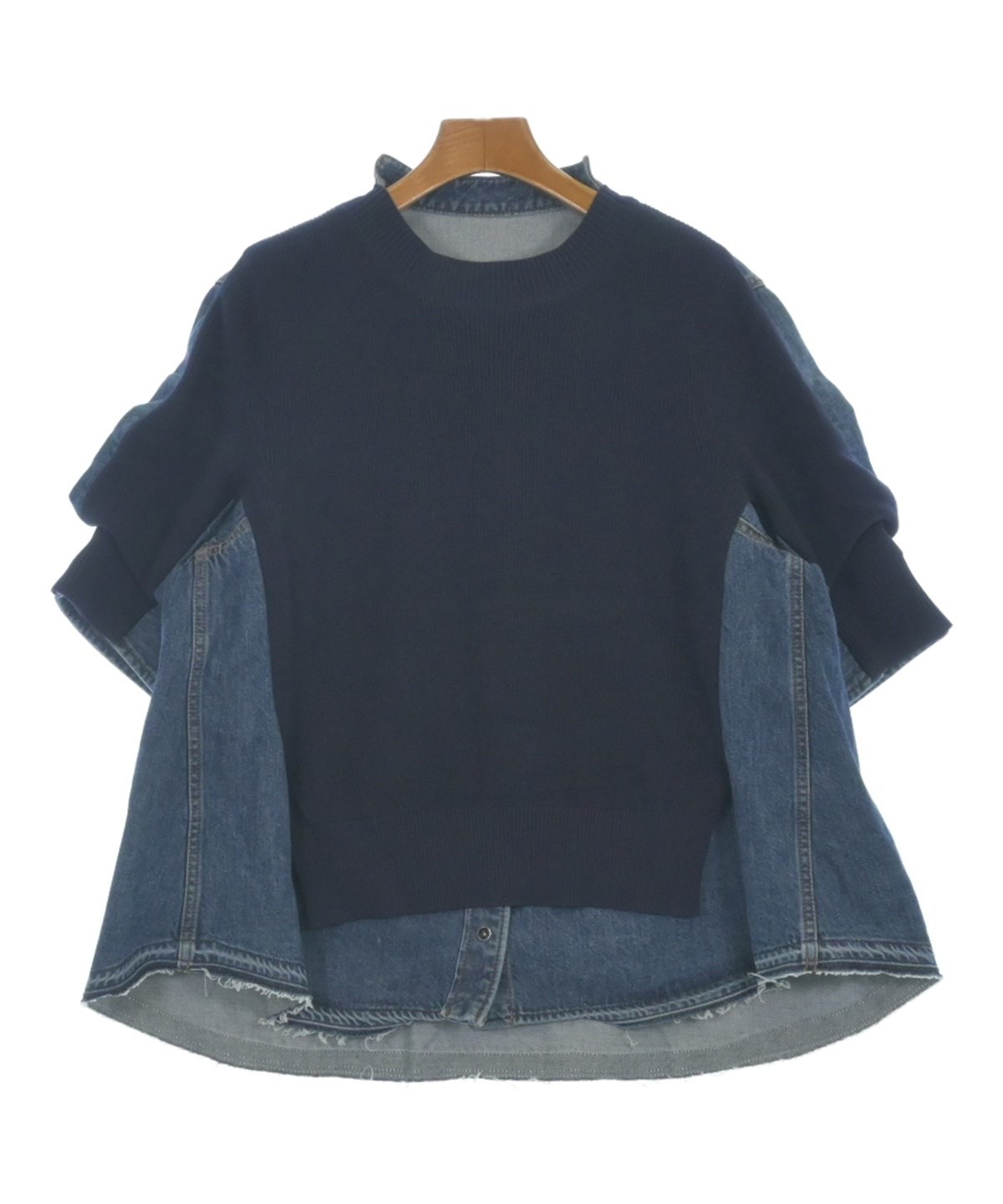 | 商品の特徴 | 0357925D0025_x1_a001.jpg。サカイデザインブラウス。SACAI<サカイ> コンビネーションショートスリーブシャツ(2245854。ストライプデザインの半袖シャツ、ドローストリング付きのフリルが特徴。sacai(サカイ)Tシャツ・カットソー グレー サイズ:1(S位) レディース。- 色: ストライプ/ネイビー- デザイン: ドローストリング付きのフリル- 素材: コットン100%、ポリエステル、牛革- サイズ: 2試着しただけで、クローゼットに眠っていました。。 | ||