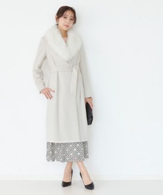 miimi カシミヤロングコート フォックスファー ビジュー オフホワイトベルト miimi カシミヤロングコート フォックスファー ビジュー オフホワイト