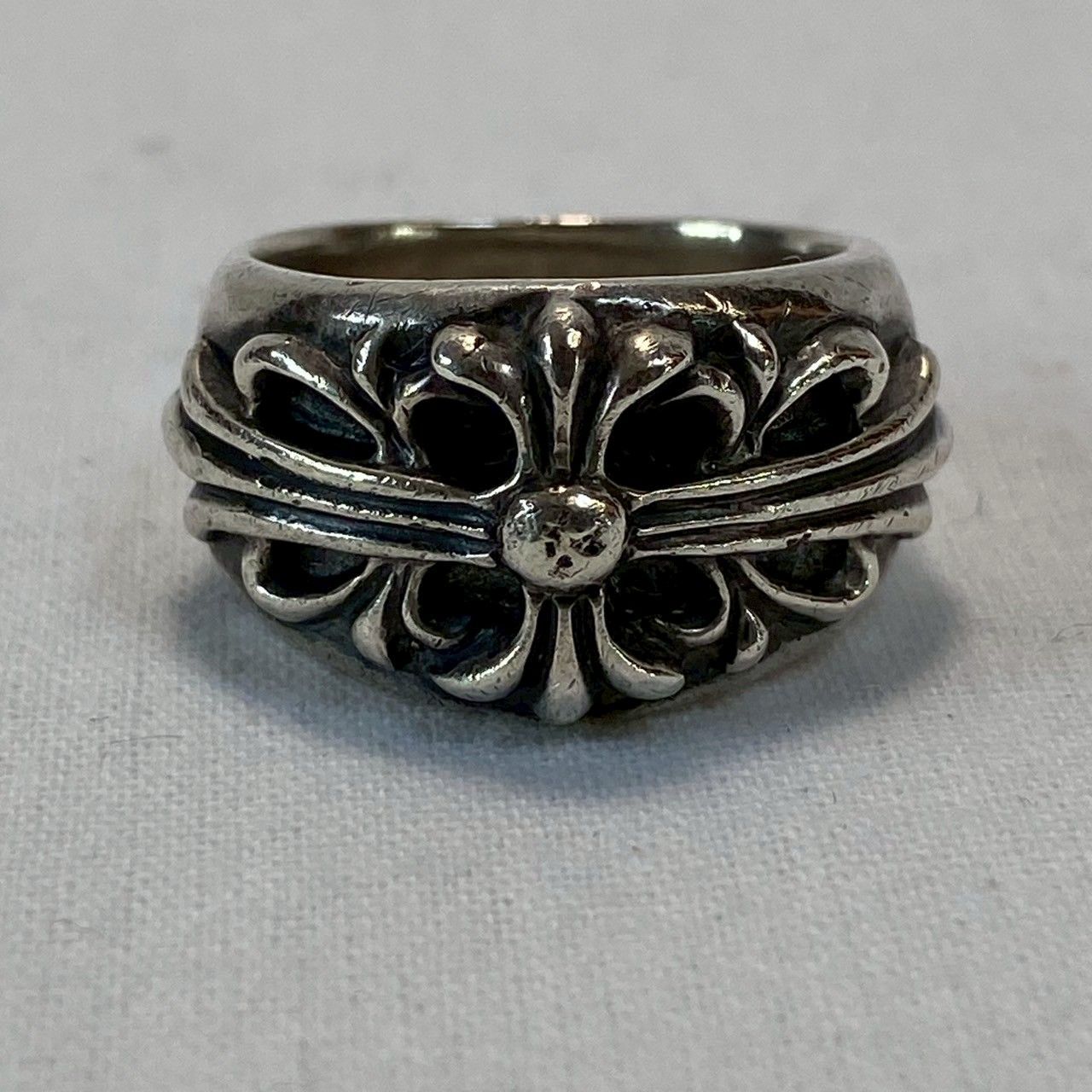| 商品の特徴 | 希少・美品】CHROME/HEARTS/フローラルクロスリング/1992年製/18号。CHROME HEARTS クロムハーツ 1992 フローラルクロスシルバー指輪。CHROME HEARTS クロムハーツ 1992 フローラルクロスシルバー指輪。クロムハーツフローラルクロスリング(指輪)|クロムハーツ通販専門店。1992年製のChrome Hearts製フローラルデザインのスターリングシルバーリング- ブランド: Chrome Hearts- 製造年: 1992- 素材: Sterling Silver- デザイン: フローラルモチーフ- スタイル: バンドリング内径 約22mmです譲っていただいたモノなので詳しい情報や証明書等はありませんが、購入当時の価格を参考に今回の価格設定としています写真を参考にご納得の上でご購入をお願いします質問等はお気軽にコメントくださいご覧いただきありがとうございます | ||
