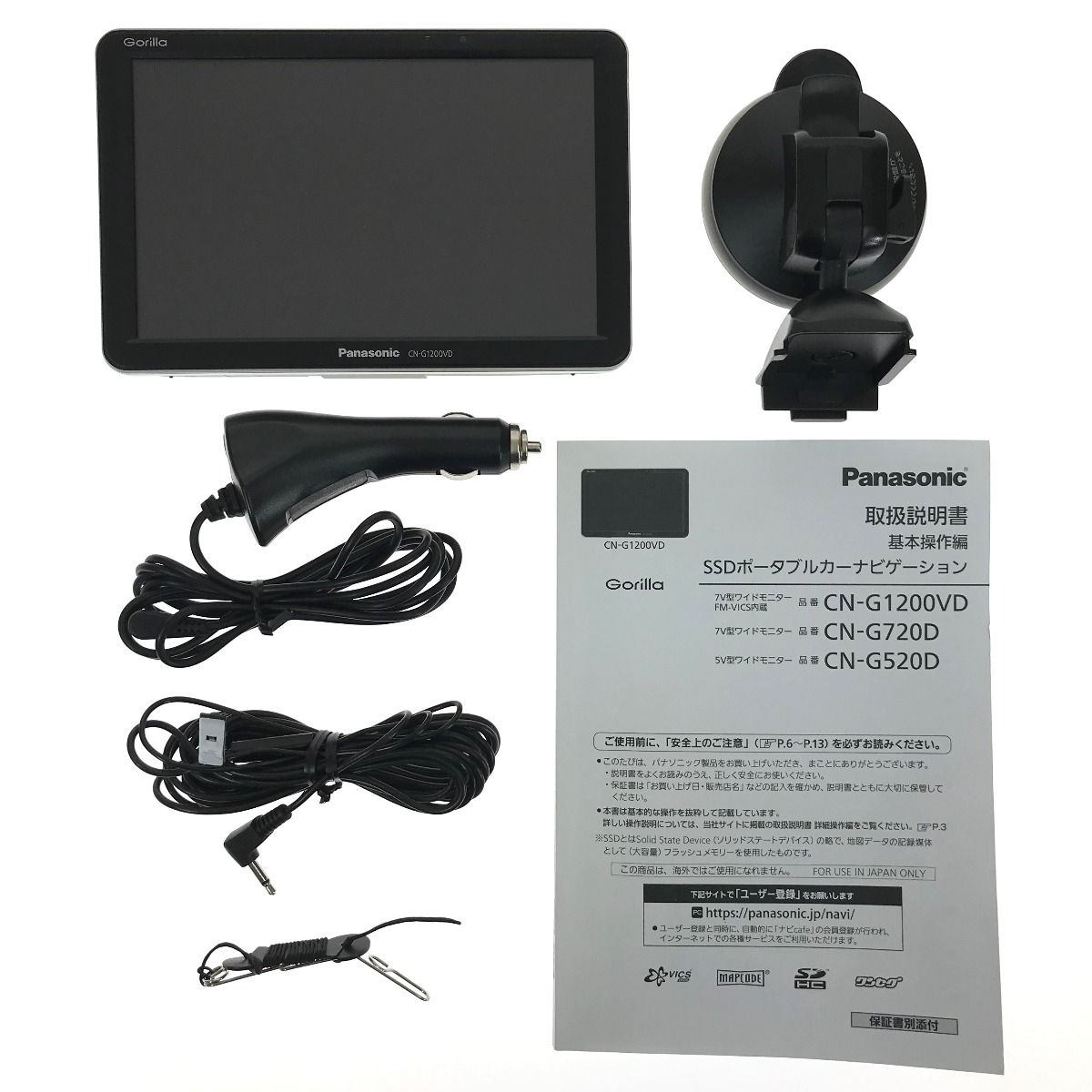 | 商品の特徴 | Panasonic CN-G750D 2022年モデル カーナビ本体と付属品 【公式通販】。Panasonic パナソニック ゴリラ ポータブルナビ CN-G750D。Panasonic CN-G750D 2022年モデル カーナビ本体と付属品 【公式通販】。写真の物が全てです。去年まで車とバイクで使用していました。スタンドは取り付けたまま車を売却してしまったので欠品です。地図データは2023年度版収録と箱に記載されています。パーキング解除プラグとバイク用のホルダーをお付けします。。Panasonic ポータブルナビ gorilla CN-G750D。。GETPAIRR ポータブルディスプレイ。【美品】PORMIDO PRA102 10.1インチディスプレイオーディオ。NSZN-W64D カーナビ ダイハツ純正 | ||