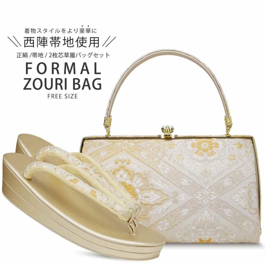 - レディース > 着物・浴衣 > 帯地 フォーマル 礼装用 高級 草履バック セット 金 ゴールド 留袖 訪問着に NISHIORI 帯地 フォーマル 礼装用 高級 草履バック セット 金 ゴールド