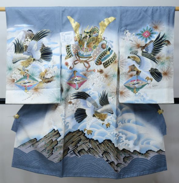 - 行事・記念品 > お宮参り用品 > お宮参り 産着 のしめ 男児 正絹 綸子地 金刺繍 グレー 兜 NO42445 お宮参り 産着 のしめ 男児 男の子 正絹 綸子地 豪華絢爛 金刺繍
