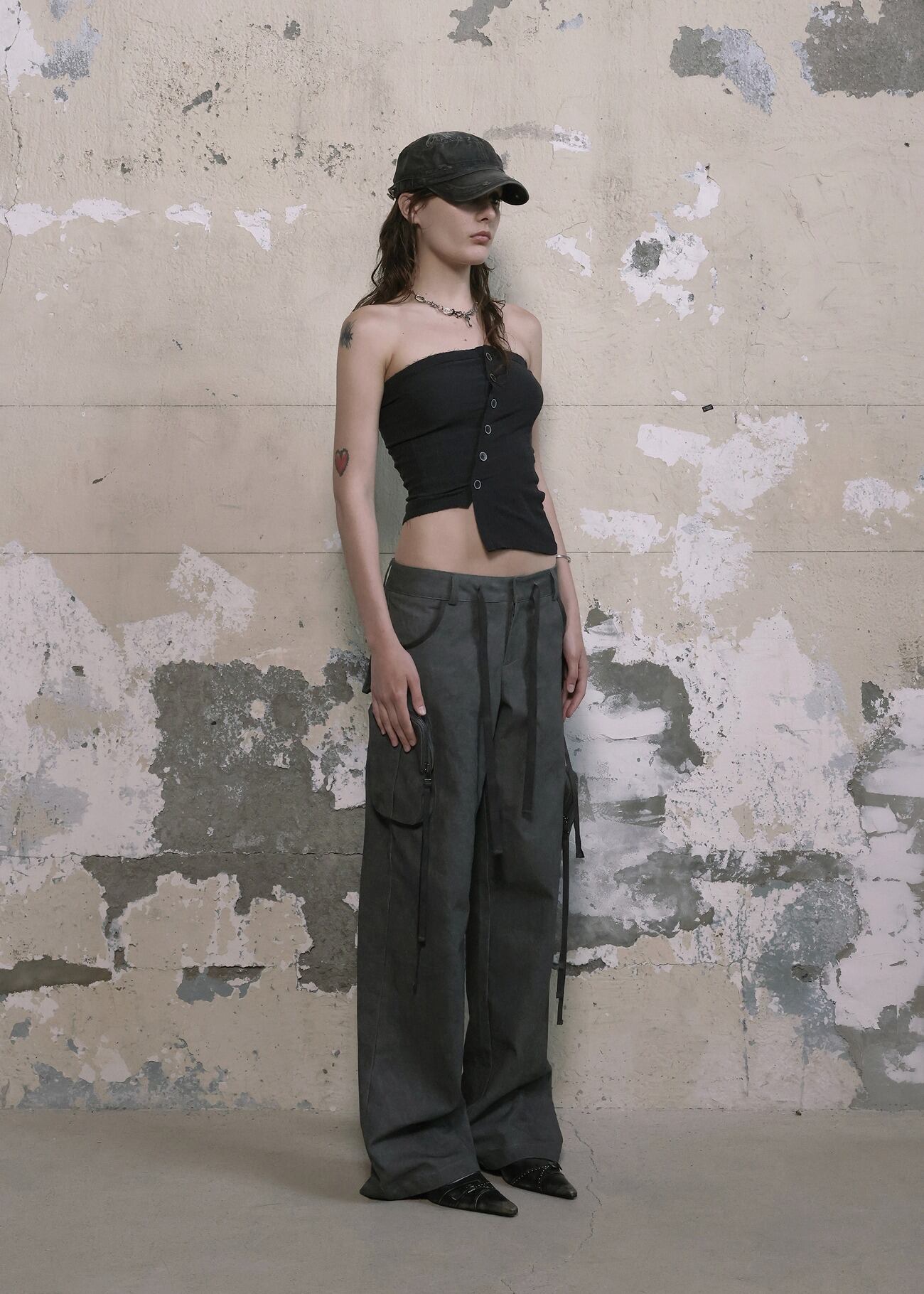 - レディース > パンツ > Bohemianseoul ボヘミアンソウル パンツ BOHEMIAN SEOUL] (UNISEX) POUCH POCKET CARGO WIDE PANTS, WASHED