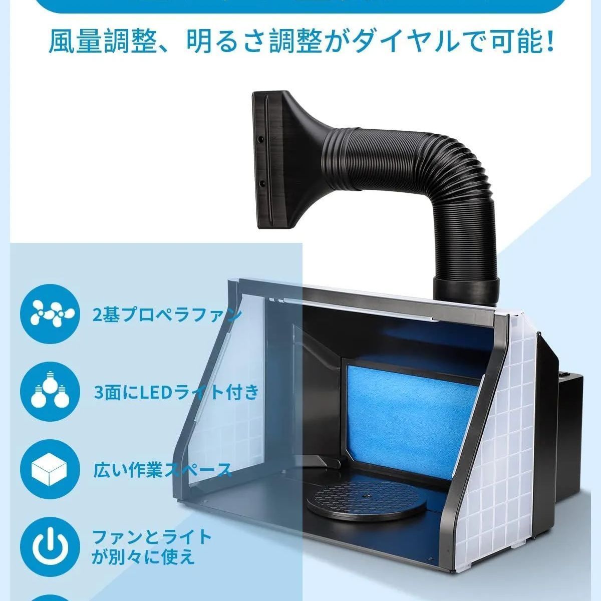 | 商品の特徴 | Anesty ショップ 塗装ブース HS-E550 LEDライト付き 排気ホース付き。Anesty ショップ 塗装ブース HS-E550 LEDライト付き 排気ホース付き。ANESTY LED塗装ブース HS-E550。LEDライト付きのコンパクトな塗装ブース、模型製作に最適。ご覧いただきありがとうございます。Amazon.com: Anesty Dual Fans Airbrush Spray Booth Paint Booth with。- タイプ: 塗装ブース- 照明: LEDライト搭載- 付属品: 電源アダプター、取扱説明書、ダクト、回転台- 素材: プラスチック製- サイズ: 47奥行き x 55幅 x 36高さ cmフィルターは消耗品のためありません。。ガイアカラー まとめ売り50個以上 プラモデル用ラッカー塗料 絶版カラー有。 | ||