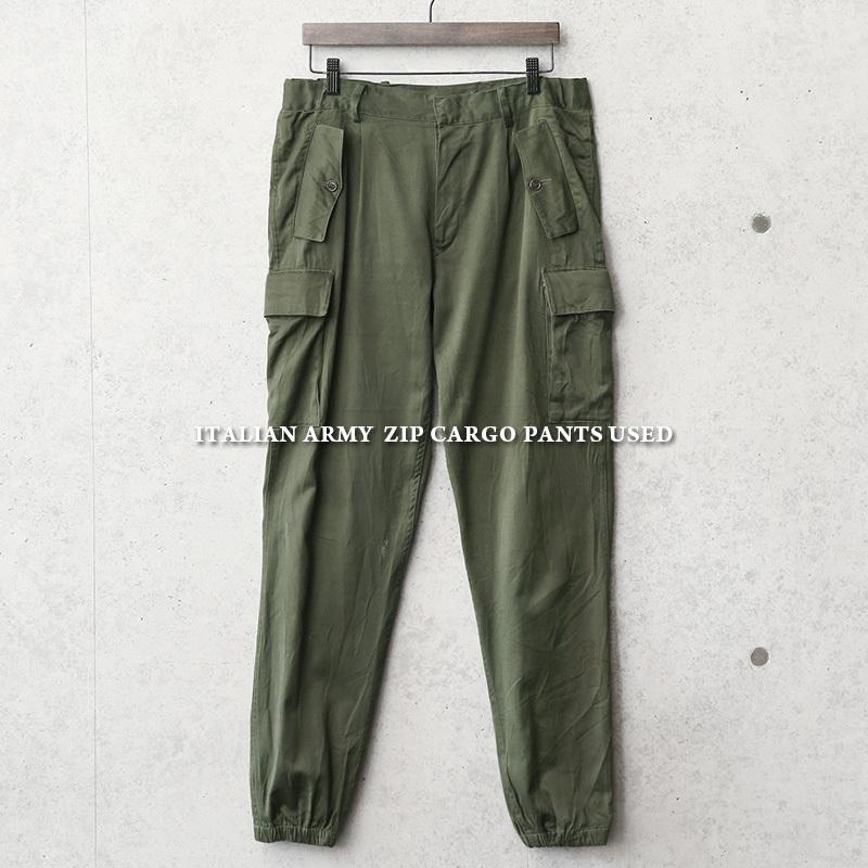 - メンズ > パンツ > ヴィンテージ ミリタリー カーゴパンツ オリーブ フランス軍風 ワイド 古着 MILITARY(ミリタリー) 実物 USED イタリア軍 ZIP カーゴパンツ