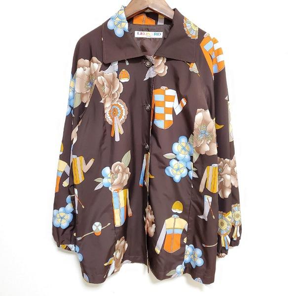 【美品】レオナール リバーシブル 中綿ジャケット ブルゾン花柄/ブラウン 42 美品】レオナール リバーシブル 中綿ジャケット ブルゾン花柄/ブラウン 42