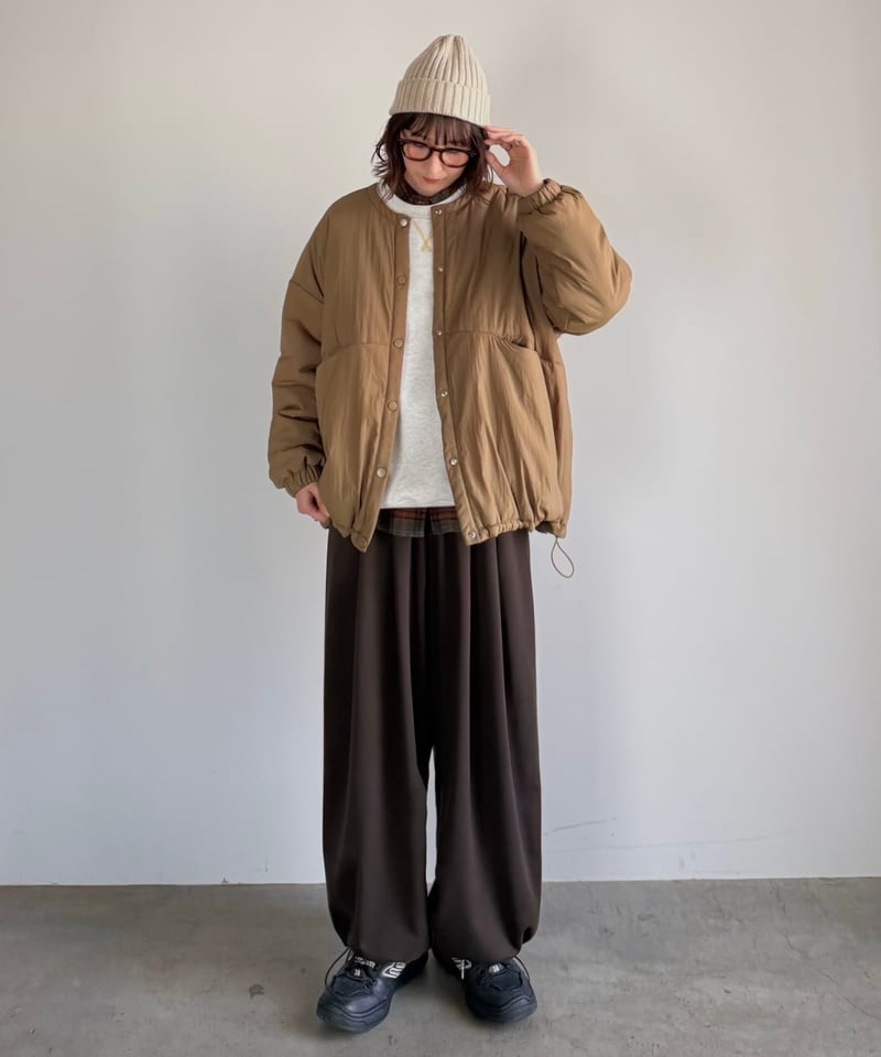 | 商品の特徴 | inner cotton light jacket | ARULLE。inner cotton light jacket | ARULLE。inner cotton light jacket | ARULLE。▶︎ ▶︎ inner cotton light jacket ▶︎ wide oval pants。。ARULLE カラー khakiサイズ(約cm)着丈 65身幅 70肩幅 68袖丈 48素材表地:ナイロン100%中綿:ポリエステル100%裏地:ポリエステル100% | ||