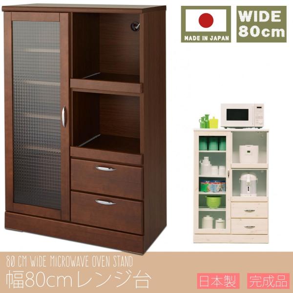 新品送料込み 食器棚 大川家具 木製 日本製 レンジボード キッチンカウンター 幅80cm レンジ台 日本製 完成品 大川家具 食器棚 キッチン 収納