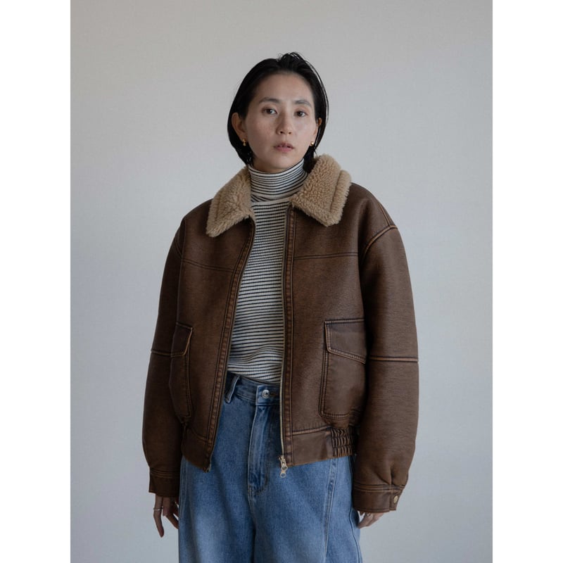 【10月限定】nokcha ボアライナーレザーライクジャケット ブラウン 予約販売》boa liner leather like jacket/2colors_no0