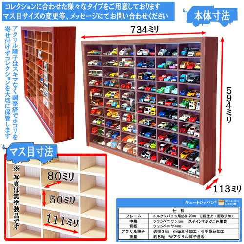 マホガニ色全塗装 トミカ収納ケース 80台 1/64 アクリル障子付 日本製 180台 ミニカー収納ケース マホガニ色全塗装 アクリル障子付 日本製