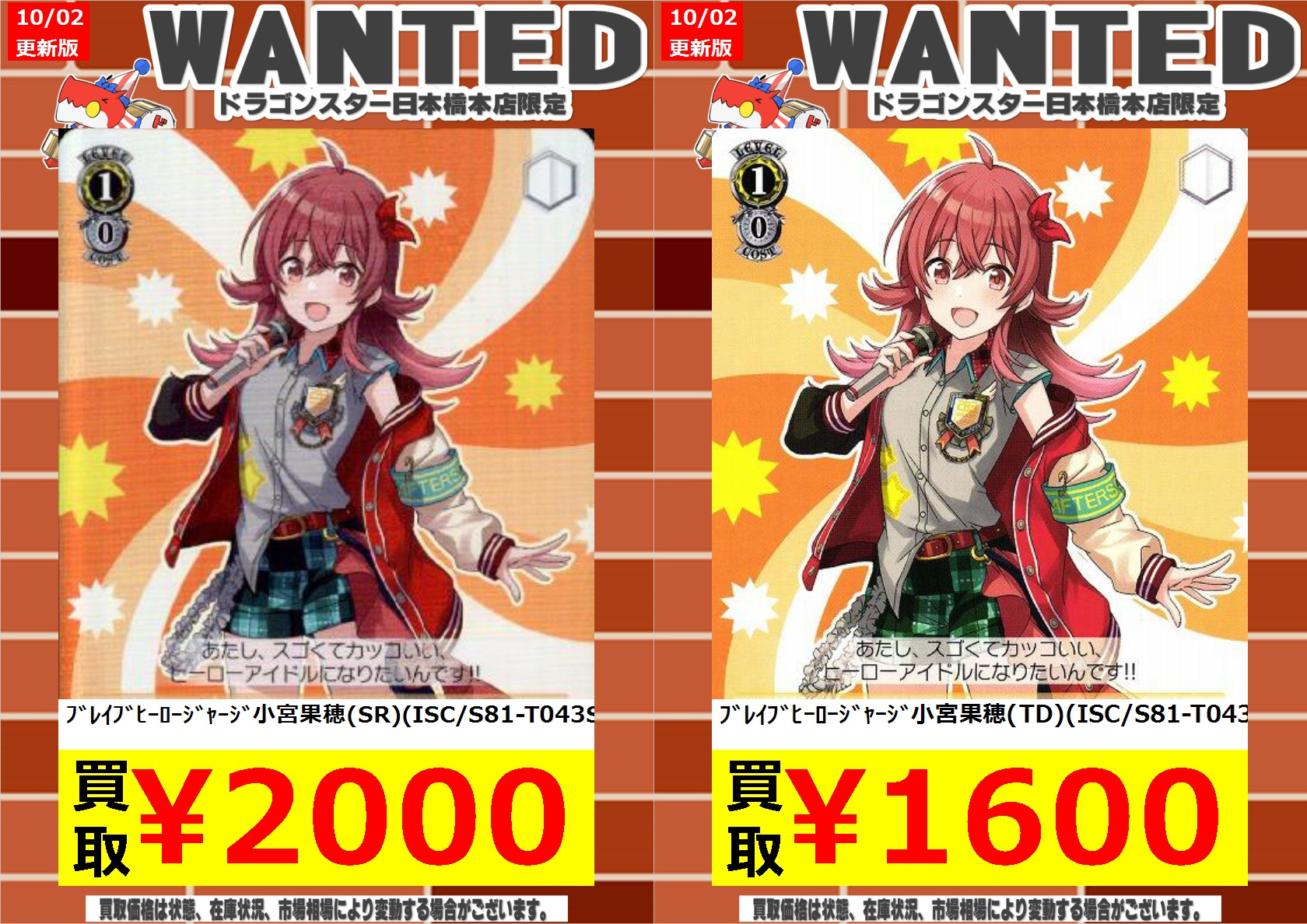 | メーカー名 | 15f64bce6 | ブランド名 | ブレイブヒーロージャージ小宮果穂 SR 4枚セット |