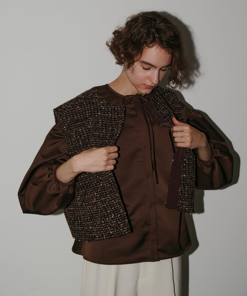 | 商品の特徴 | TWEED GILET | OHGA。TWEED GILET | OHGA。TWEED GILET | OHGA。。【素材】(表地)ポリエステル70毛30(裏地)ポリエステル100SIZE着丈バスト肩幅袖ぐり裾幅FREE52.9㎝114㎝46㎝57.9㎝105.5㎝。OHGA 2025TWEED GILET ベスト ブラウン一度のみの短時間着用で美品です。SANDY VEST - J1189B – dRA | ||