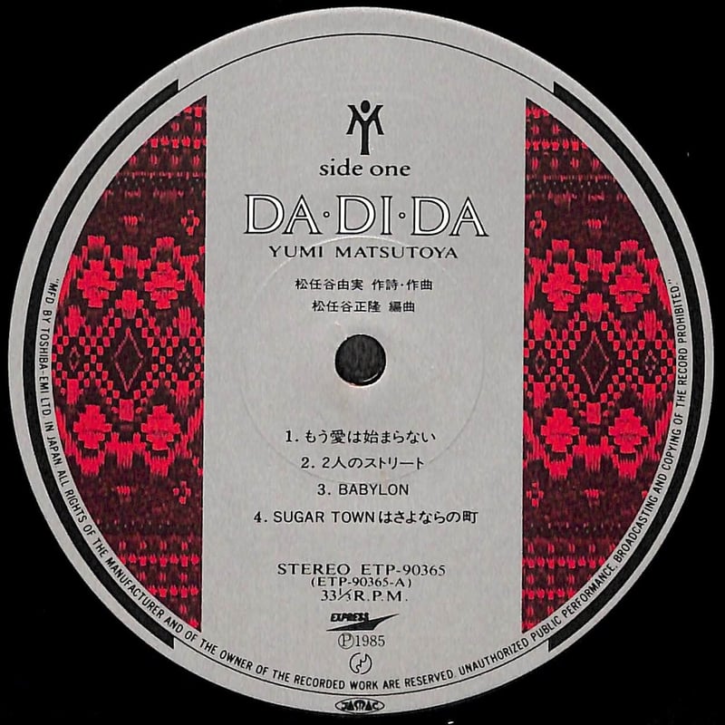 | 商品の特徴 | 松任谷由実 / ダ・ディ・ダ [※国内盤,品番:ETP-90365](LPレコード。松任谷由実 / Da・Di・Da - Guitar Records。レア 稀少 LPレコード 松任谷由実 (ユーミン) DA・DI・DA - メルカリ。松任谷由実 / DA・DI・DA [LP - ETP-90365]:JAPANESE:アナログ。特集盤レコード、当時、2800,円で購入 | ||
