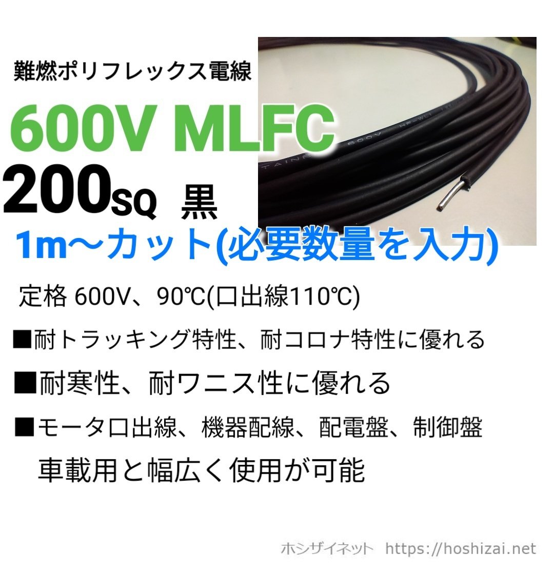 | 商品の特徴 | fit=scale-down,w=1200。日立 MLFC 200sq 600V 1m 600V MLFC 200SQ 黒 【1m~フリーカット。日立 MLFC 200sq 600V 1m 日立 MLFC 200sq 600V 1m 日立 MLFC 200sq。600V MLFC 8.0sq (WL1) 難燃性ポリフレックス。。商品の説明はありません | ||