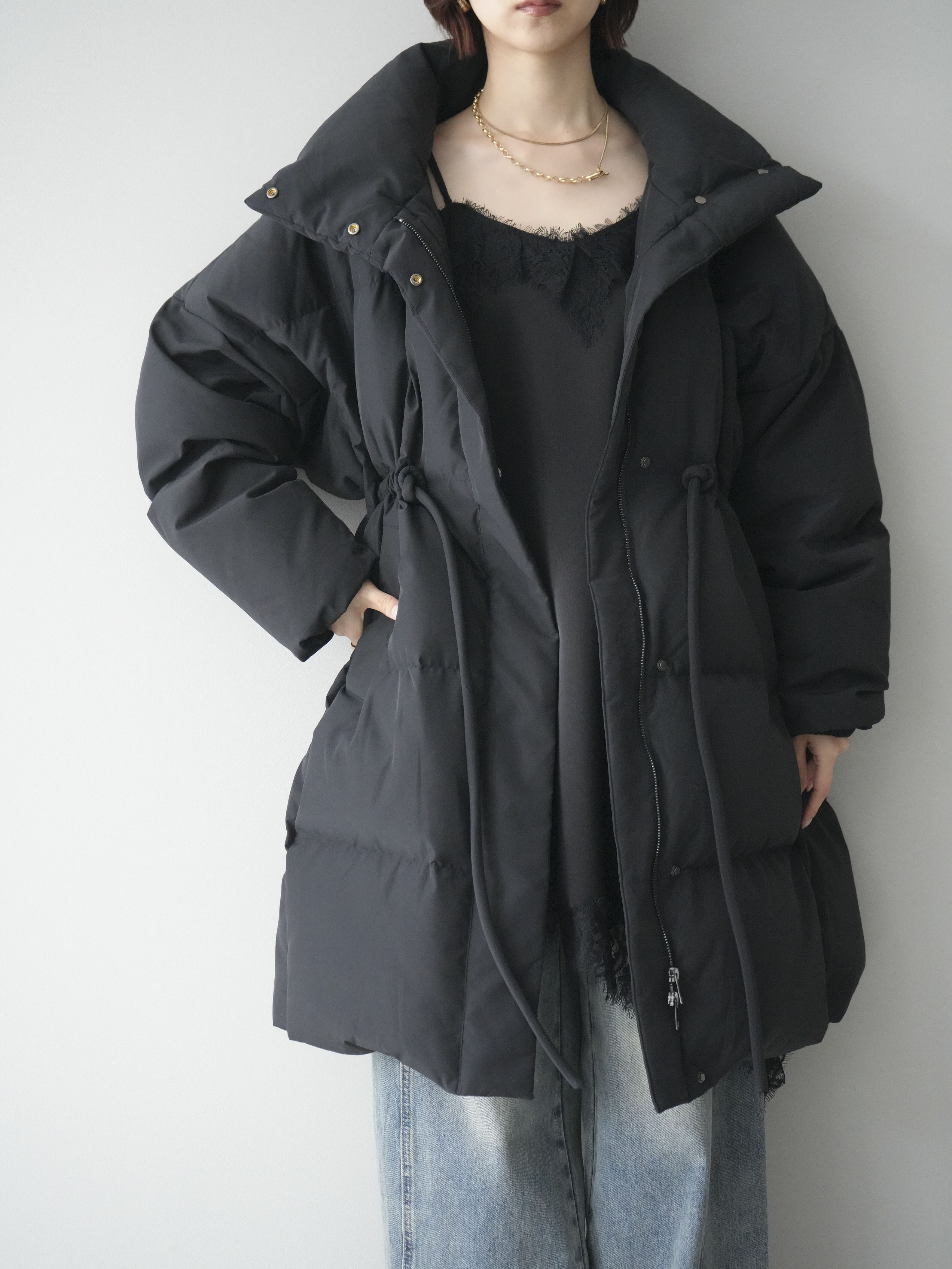 - レディース > ジャケット・アウター > 【美品✨】Ameri ダウンコート スタンドカラー ベルト マキシ丈 黒 美品✨】Ameri ダウンコート スタンドカラー ベルト マキシ丈 黒 SET