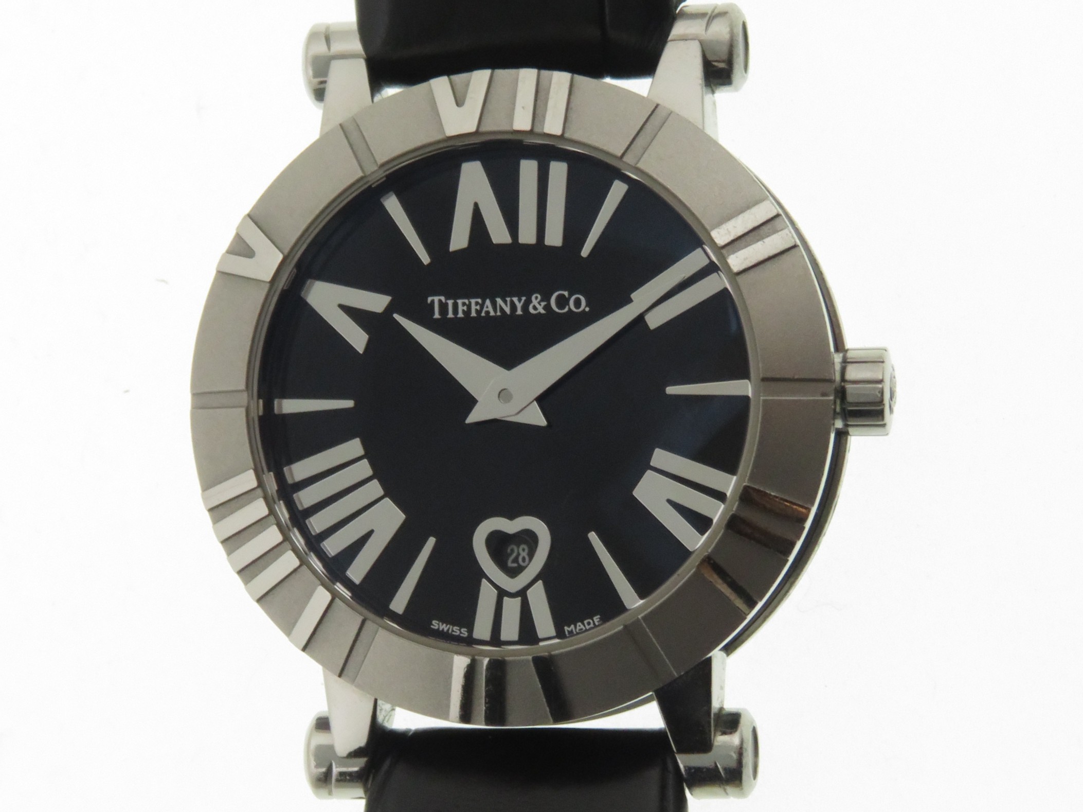 - レディース > 時計 > 美品 Tiffany & Co. ブラック時計 アトラス 黒文字盤 電池交換済み TIFFANY&CO ティファニー アトラス ブラック文字盤 革/SS/CE