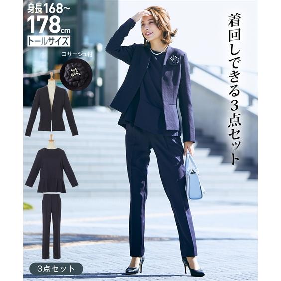 新品☆LLトール紺系♪フォーマルパンツスーツ3点♪ツイード調ジャケット〇D159 ニッセン(nissen) フォーマル 3点セット トールサイズ レディース