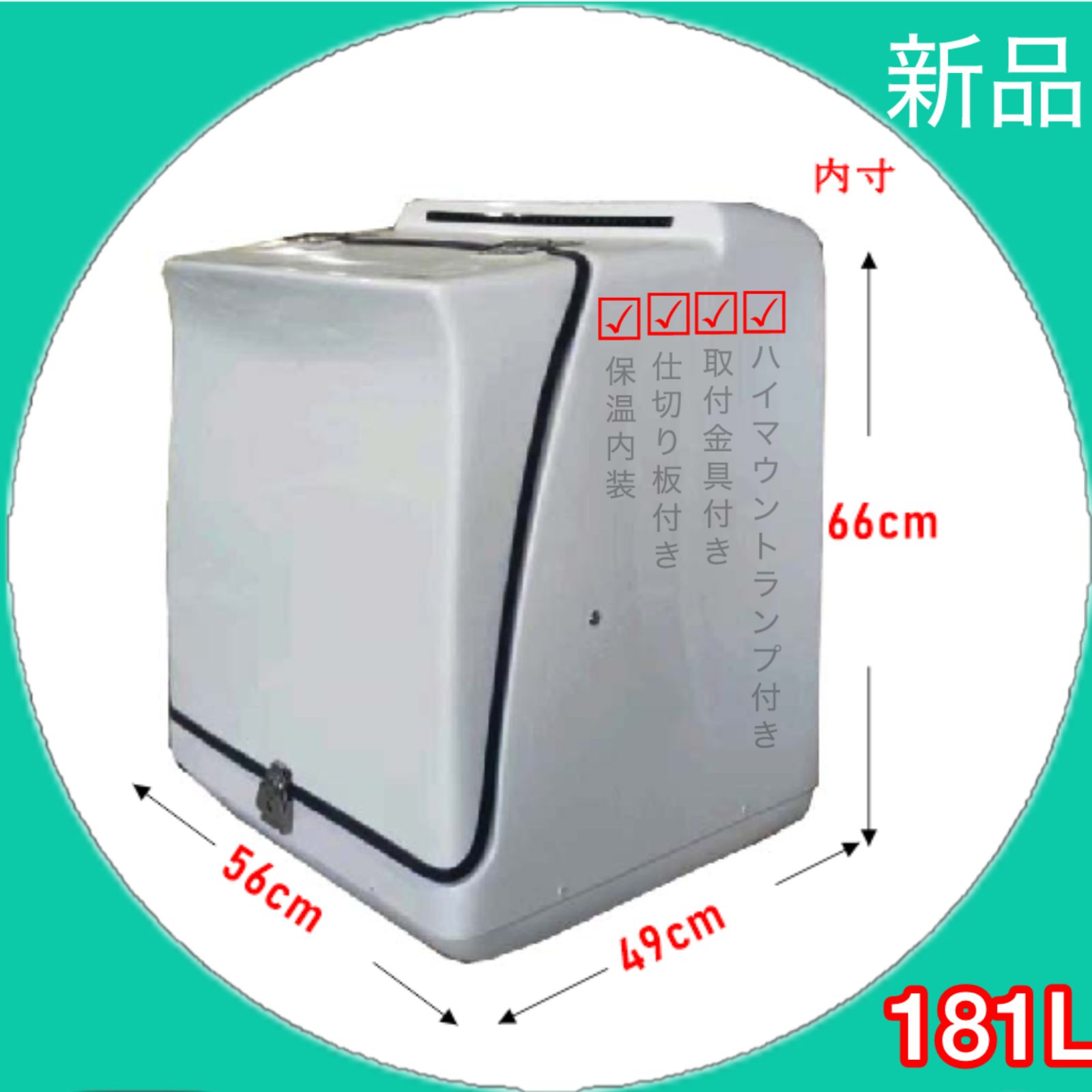 | 商品の特徴 | デリバリーボックスリアボックス宅配ボックス置き配ボックス大容量181L。デリバリーボックスリアボックス宅配ボックス置き配ボックス大容量181L。デリバリーボックスリアボックス宅配ボックス置き配ボックス大容量181L。商品名:デリバリーボックス181L⚫︎カラー:ホワイト⚫︎型番:b10w⚫︎内容物:仕切り板1枚、カギ2本、ハイマウントランプ1本(約1.2m)、取付金具1セット⚫︎材質:カギ·ヒンジ:ステンレス、ボックス:FRP⚫︎本体重量:9kg⚫︎内寸:長さ56幅49高さ66cm⚫︎積載量:約181L⚫︎ブランド名:JYC(創業18年以上デリバリーボックス·グローバル·メーカー、お取引先はドイツ、アメリカ、東南アジアなど)商品説明:⚫︎保温シート付き:3時間温度維持可能、駅弁ツーリング、お寿司生鮮食料品などデリバリー業務に最適。2026年1月】バイク デリバリーボックスのおすすめ人気ランキング。⚫︎FRP素材:錆びにくい、軽量、耐久性が良い⚫︎181L大容量:買い物やツーリングの荷物は大体入るほど大きなボックス⚫︎防水:蓋の上部から雨水が入らないように工夫⚫︎汎用取付ステー付き:様々な車両へ取付可能、脱着が簡単⚫︎開け閉めしやすい:トランク感覚使用のハードケース、出し入れが便利⚫︎仕切り板付き:整理整頓、迷わずサッと荷物を取り出せる、荷物も倒れにくい、ずれない、取り外しも可能⚫︎安心セキュリティー:カギ付きで使い勝手が良い、2本付き紛失心配なし⚫︎ハイマウントランプ付き:安全運転可能、後続車による追突を防止⚫︎お手頃な価格:メーカー直販なので、流通コストを削減⚫︎スタイリッシュ:外観がよく、コーティングもきれい、バイクでの外出またはデリバリー仕事が楽しくなる◆取付方法:画像をご参考にしてください。。3パターンを提案しました。【新品】アートワーク メールボックス1 エンボス文字なし TK-2076CR。ご自身の車種と知識に応じて、取付可能です。☆宅配ボックス大容量1ドア ブラック。もし不安なら、専門家またはバイク整備士に取付を任せても良いです。【新品未使用】Qrio Pad キュリオパッド スマートロック カード式。◆適合車種#ジャイロキャノピー#ジャイロup#ジャイロX#ヤマハギア#その他汎用※数量調整可能です。新色登場宅配ボックス 戸建 大型 R2014ポスト一体型 屋外 置き配ボックス。受注生産も可能、生産後メルカリショップで販売致します。LIXIL エクスポスト。ご質問が有れば、いつでも相談可能です。三協アルミ キーガル 無線キー。※今回、輸入積替で段ボール外側は少し破れがあるが、商品本体は綺麗です。アルビ welcomeプレート チェーンソーカービング 栗田宏武 作。このまま段ボールを補強し、発送しても本体に影響がありません。【新品未使用】SwitchBot スマートロック プロ 鍵 スマートキー。 | ||