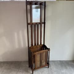 - 洋服タンス・押入れ収納 > ハンガーラック・ポールハンガー > オールド カリモク コロニアル 傘立て付き スタンドミラーラック 昭和レトロ オールド カリモク コロニアル 傘立て付き スタンドミラーラック 昭和