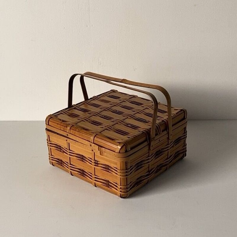 - インテリア小物 > 小物入れ > 竹細工 竹編み細工 天然素材 手付き バスケット 籠 古民具 当時物 ピクニック 竹細工 竹編み細工 天然素材 手付き バスケット 籠 古民具 当時物