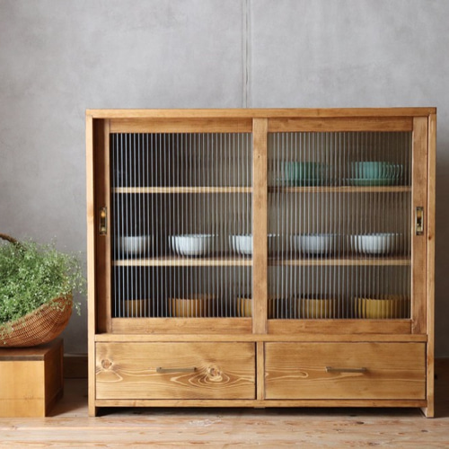 | メーカー | 食器棚 ガラス戸棚 モールガラス 昭和レトロ 古家具 古い木枠のモールガラス戸棚 |