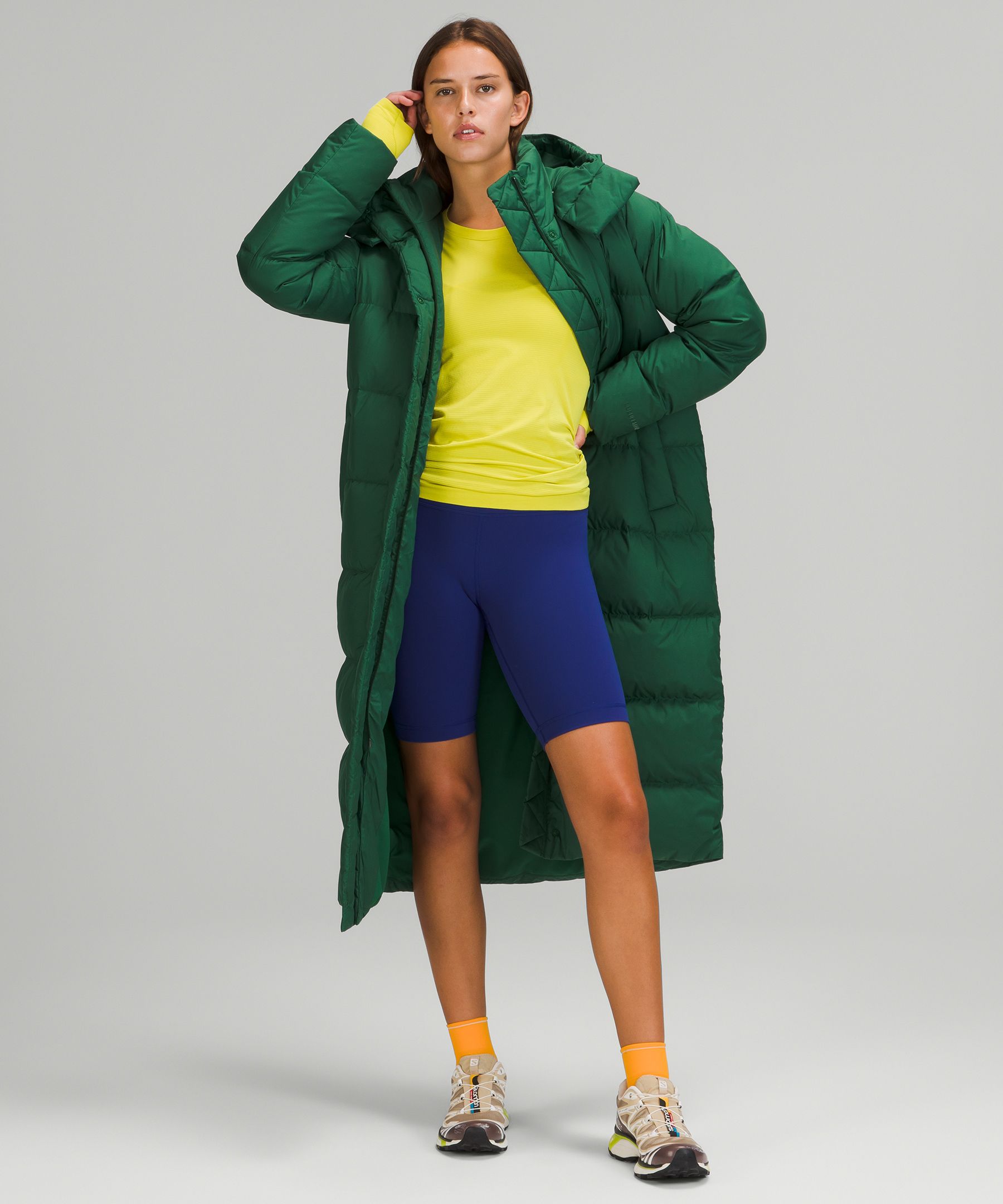 ルルレモン ワンダーパフ グリーン フード付き ロングダウンジャケット サイズ6 Wunder Puff 600ダウンフィル ロングジャケット | ジャケット&アウター
