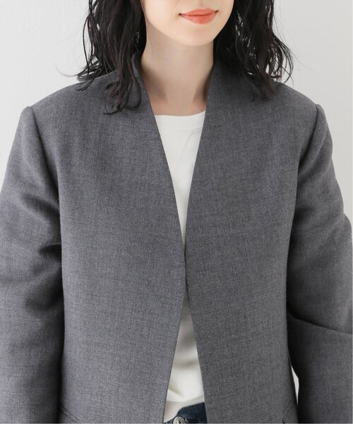 - レディース > ジャケット・アウター > Plage 【R’IAM】ノーカラー ショートジャケット フリーサイズ グレー plage(プラージュ)の「【R'IAM】ノーカラー ショートジャケット