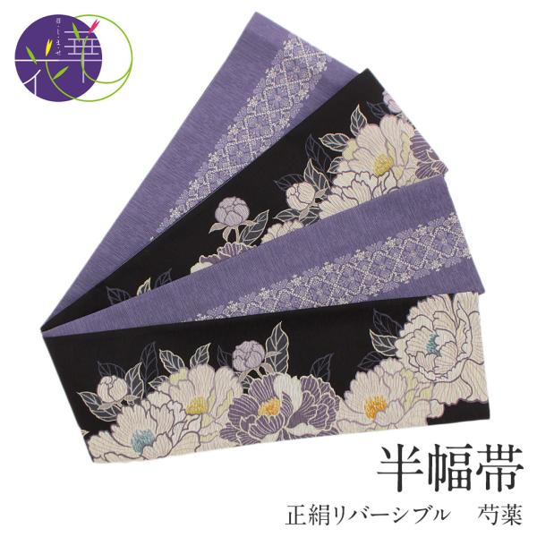 | メーカー | 半幅帯 正絹 新品未使用品 白に薄紫の文字と黒地にシルバーのドット 半幅帯 |