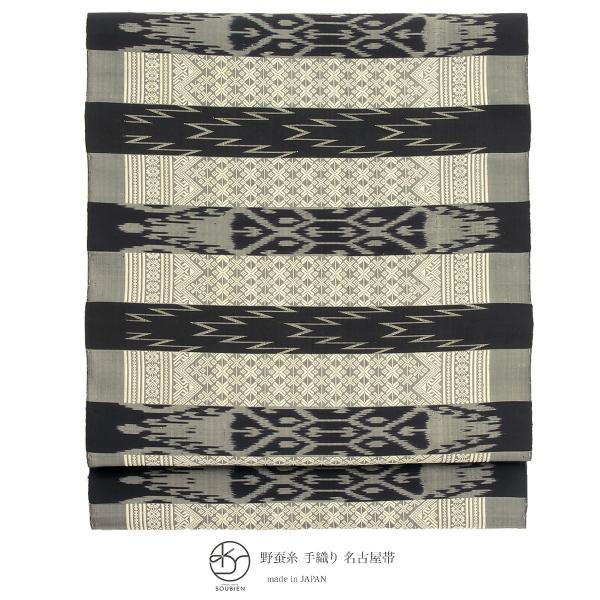 - レディース > 着物・浴衣 > [美品] 名古屋帯 正絹 お太鼓柄 黒 絞り 洒落帯 カジュアル 小紋 紬 無地 SOUBIEN(創美苑) 【未仕立て】名古屋帯 正絹 九寸名古屋帯 紬 黒