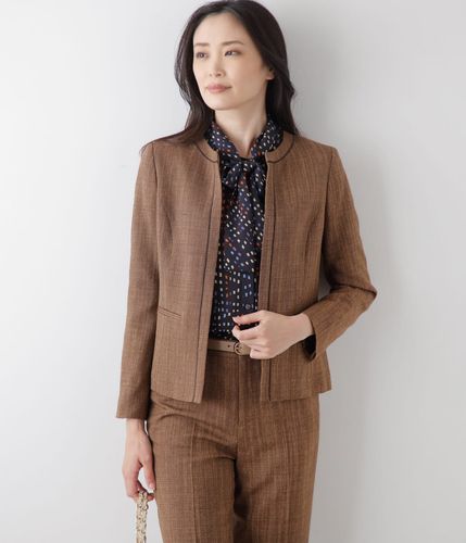 - レディース > ジャケット・アウター > BRAHMIN ノーカラーツィードジャケット 新品タグつき クラフトスラブツィードパイピングノーカラージャケット(51113151-2024