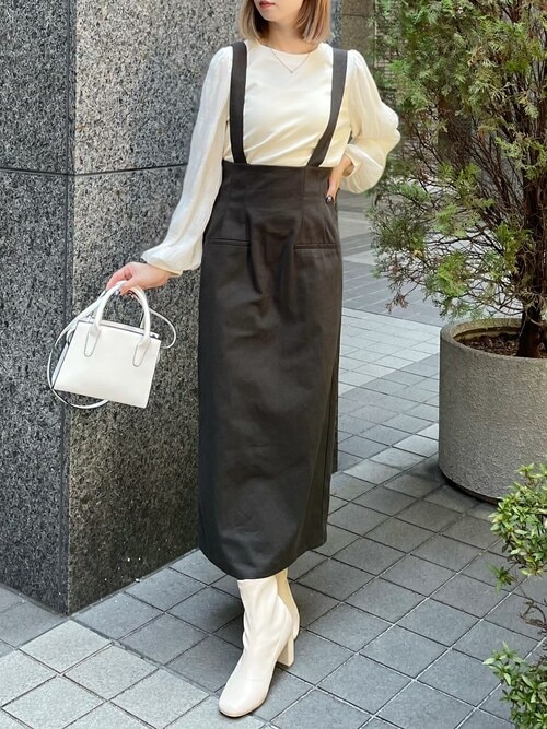 | メーカー | 【値下げ中、新品タグ付き】Noble サスペンダー付きベージュタイトスカート |