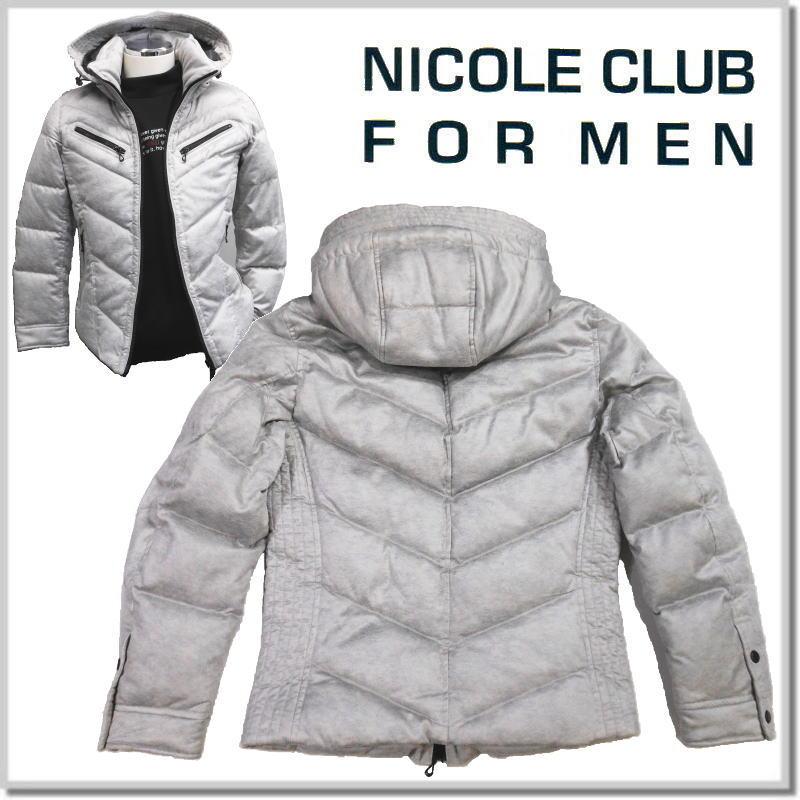 【美品】ニコルクラブフォーメン/グレー ニコルダウンジャケット 46 フード付き NICOLE CLUB FOR MEN(ニコルクラブフォーメン) マイクロスウェード