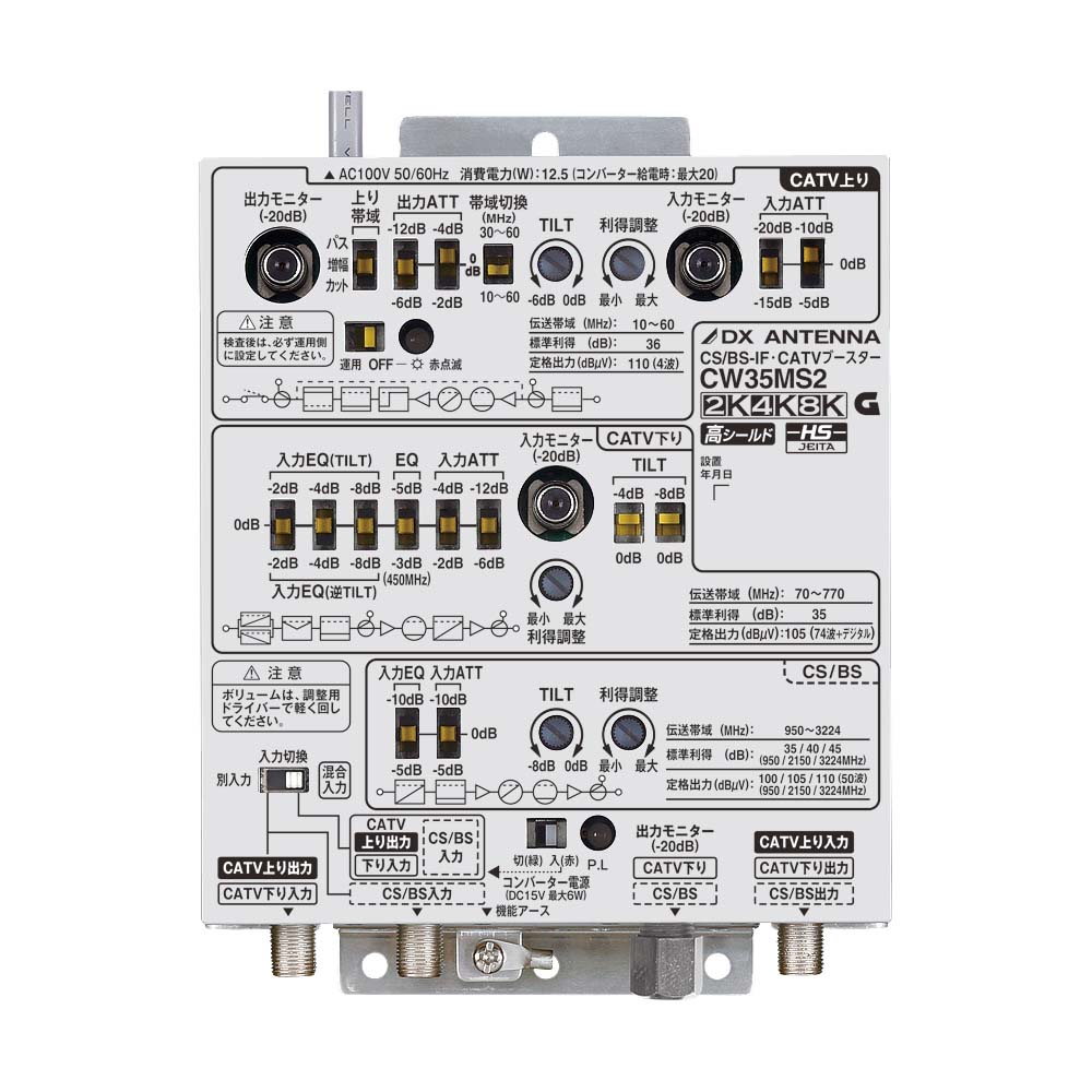 - オーディオ機器 > アンプ > DXアンテナ CS/BS-IF・CATVブースター CW35MS2 CS/BS-IF・CATVブースター(35dB形) | 製品情報 | DXアンテナ