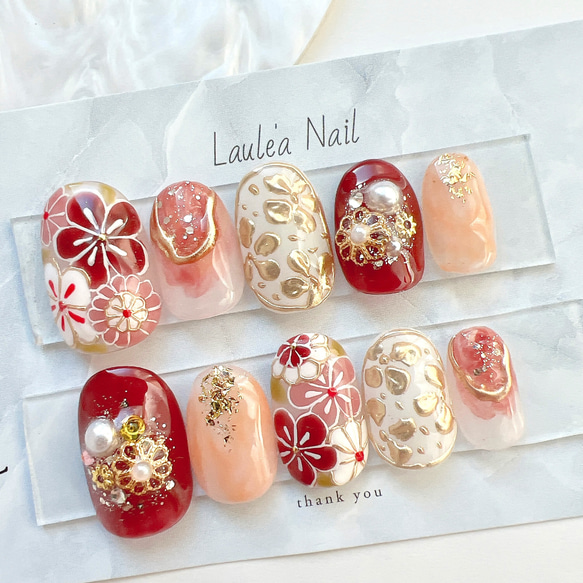 - ネイルケア > ネイルチップ・付け爪 > ネイルチップ 成人式 和柄 赤 振袖 フルオーダーネイル ネイルチップオーダー ネイルチップ 成人式 成人式ネイルチップ 赤 ニュアンスネイル 和柄
