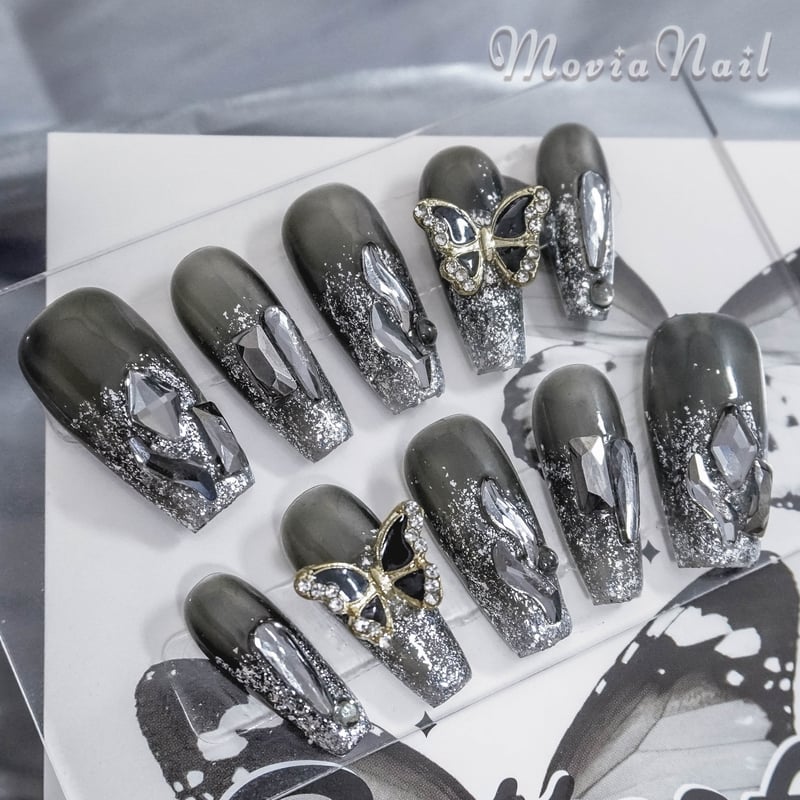 ネイルチップ オーダー フレンチ ガーリー 黒 推し 蝶々 3d ゴテゴテ 韓国 ネイルチップ オーダー フレンチ ガーリー 黒 推し 蝶々 3d ゴテゴテ