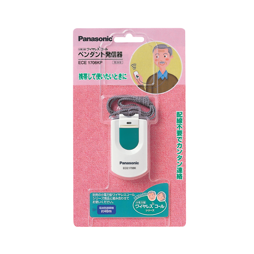 - 看護・介護用品 > 介護用ベッド・寝具 > Panasonic ワイヤレスコール ECE1601/ECE1706K 概要 小電力型ワイヤレスコールペンダント発信器 ECE1706KP | チャイム