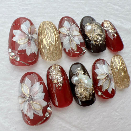 - ネイルケア > ネイルチップ・付け爪 > ネイルチップ 成人式 和柄 振袖 赤 オーダーネイル ネイルチップオーダー ネイルチップ/成人式ネイル/振袖/前撮り/和装/和柄/花柄/卒業式/赤