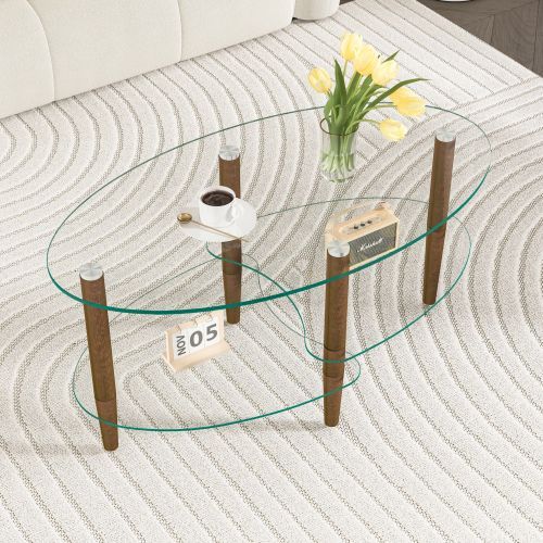 - 看護・介護用品 > 介護用ベッド・寝具 > 楕円形ガラスコーヒーテーブル透明3段ガラス天板 オーク材脚モダンリビングテーブル 楕円形ガラスコーヒーテーブル 透明3段ガラス天板 オーク材脚 モダン
