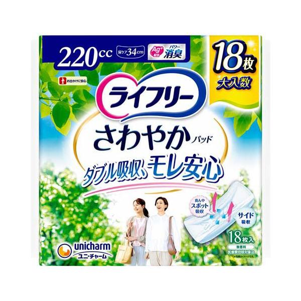 ●ライフリー さわやかパッド 220cc 18枚 × 16袋 合計288枚 ライフリー さわやかパッド 220cc 女性用 尿ケアパッド 34cm ( 18枚入
