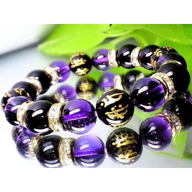| 商品の特徴 | 天然石 数珠ブレスレット 12ミリ 七種 梵字 黒瑪瑙・紫水晶アメジスト。ラピスラズリ・アメジスト・天眼石 ブレスレット | 天然石通販の4976堂。天然石アメジスト紫水晶12ミリ金ロンデル数珠ブレスレット魔除け。黒と紫のビーズが交互に配置されたブレスレットで、シンプルながらもスタイリッシュなデザイン。楽天市場】【マラソンSALE!】 「小悪魔」 オニキス アメジスト。- カラー: 黒と紫のビーズ- 素材: ビーズ- スタイル: ブレスレット- デザイン: 交互のビーズ配置ご覧いただきありがとうございます。。 | ||