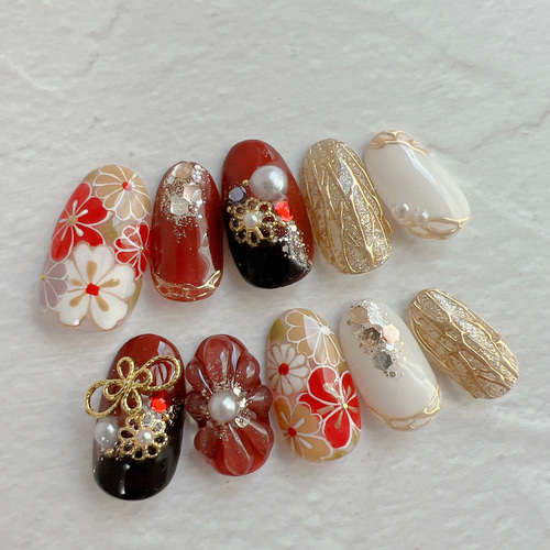 - ネイルケア > ネイルチップ・付け爪 > ネイルチップ 成人式 和柄 振袖 花 フラワー オーダーネイル カラー変更 ネイルチップ 成人式 和柄 振袖 花 フラワー オーダーネイル カラー