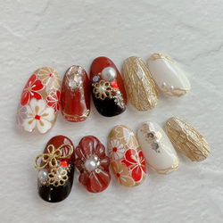 - ネイルケア > ネイルチップ・付け爪 > ネイルチップ ジェルネイル 成人式 振袖 和柄 派手 赤 フルオーダー オーダー ネイルチップ 成人式 振袖 着物 赤 黒 花柄 ぷっくりフラワー 花柄 和