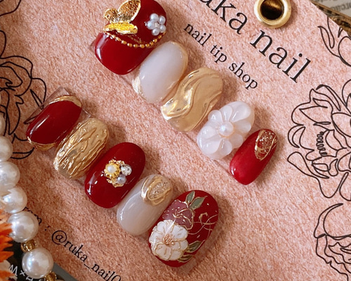- ネイルケア > ネイルチップ・付け爪 > ネイルチップ サイズオーダー 袴 卒業式 花 和装 結婚式 手描き 振袖 成人式 1656a8af4c8bc919150e6564946e4e